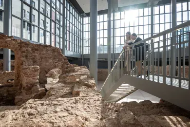 - Die moderne Überdachung hebt sich bewusst von den römischen Ruinen ab und schafft gleichzeitig einen spannenden Dialog zwischen Vergangenheit und Gegenwart. Durch die lichtdurchflutete Bauweise hast Du einen freien Blick auf die historischen Mauern, ohne dass deren Wirkung beeinträchtigt wird.
