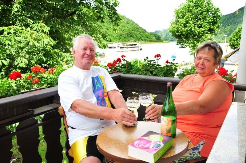 Lassen Sie Ihren Wandertag bei uns mit einem guten Glas Wein und einem herrlichen Blick auf den Rhein ausklingen.