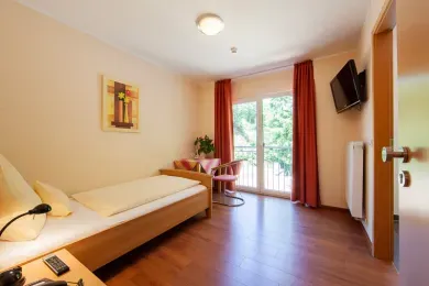 Alle Zimmer sind über den Personenaufzug barrierefrei erreichbar, sind Nichtraucherzimmer und mit Dusche, WC, Fernseher und Direktwahltelefon ausgestattet. Einige Zimmer verfügen über einen Balkon.