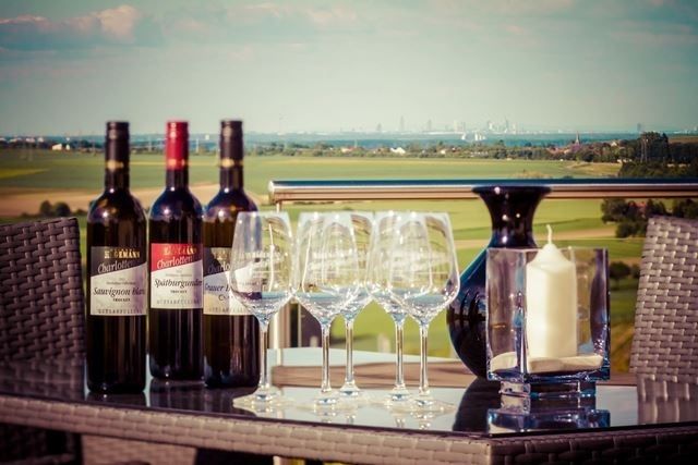 Bis zu 55 Personen finden in unserer barrierefreien Vinothek Platz. Hier können Sie an einer Weinprobe teilnehmen, Ihre nächste Familienfeier/Tagung abhalten oder nach einer Übernachtung in unserem Gästehaus frühstücken. Weinproben auf unserem Weingut werden durch eine Weinbergsrundfahrt und eine Betriebsbesichtigung abgerundet. Gerne führen wir auch Weinproben bei Ihnen zu Hause mit Ihren Freunden und Verwandten durch. Etwas Besonderes für uns ist der Rundblick in die Weinberge. Bei klarer Sicht können Sie den Taunus und die Skyline von Frankfurt sehen. An kühlen Tagen bietet Ihnen unser Kamin Gemütlichkeit und wohlige Wärme, welche Sie zum Verweilen einladen.
