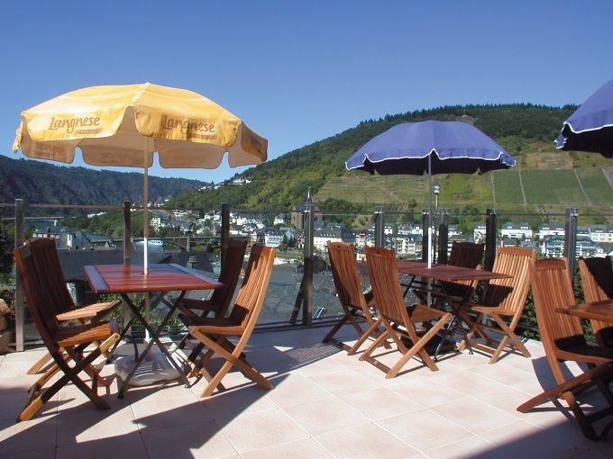 Auch unsere Sonnenterrasse sucht ihresgleichen. Hier genießen Sie die frische Luft, die mittelalterliche Stadt und der malerische Fluss, umrahmt von Weinbergen, liegen zu Ihren Füßen.