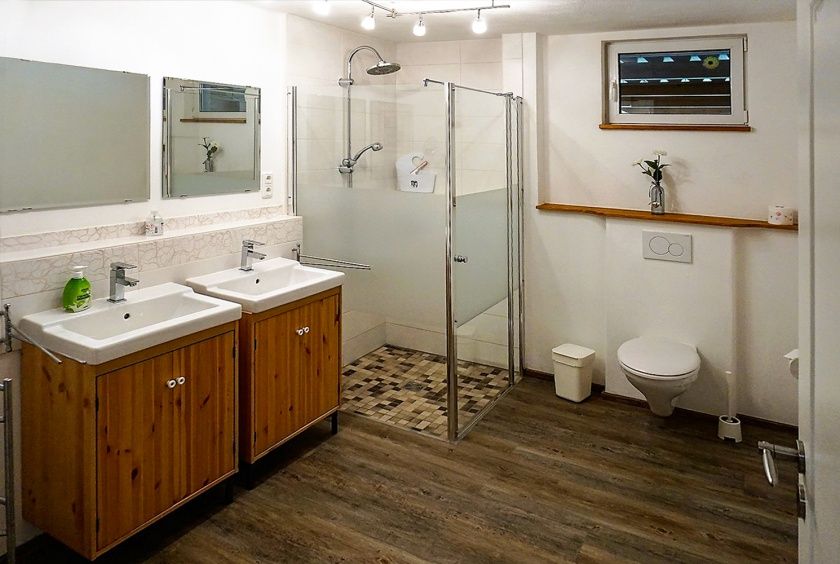 - Bad und Sanitär: Dusche, Fön, Wäscheständer, WC