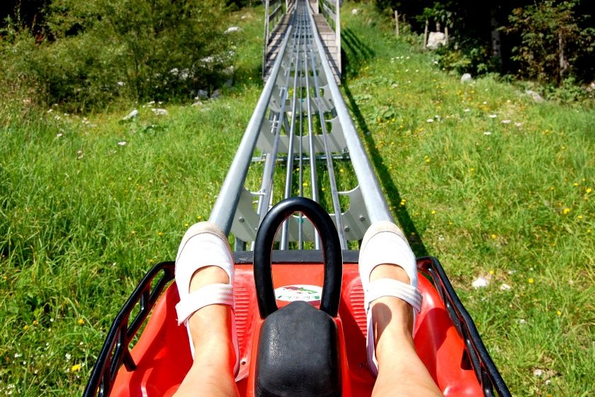 - Kinder können ab 8 Jahren und einer Größe ab 1,35 m alleine auf der Rodelbahn fahren.