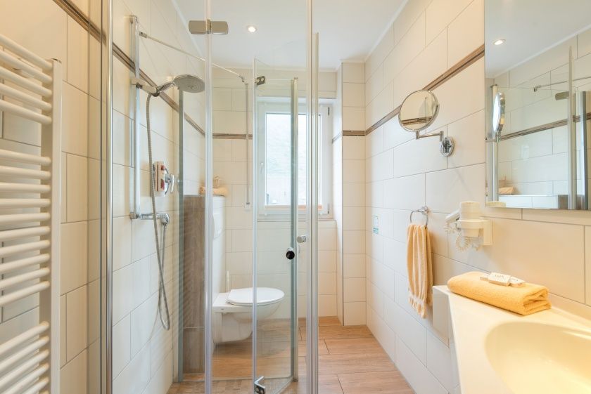 Die Badezimmer sind mit Dusche/WC, Handtuchwärmer und einem Föhn ausgestattet.