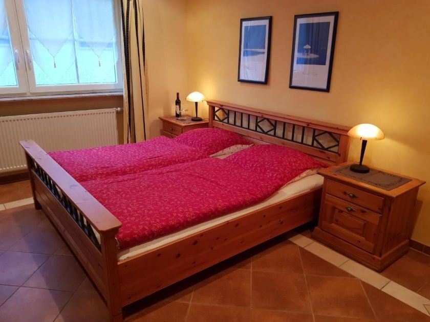 Erholung und Entspannung pur in unseren 5 ruhig gelegenen Doppelzimmern und einem geräumigen Familienzimmer mit einem Doppelbett und einem Raum mit Etagenbett, finden Sie in unserem Gästehaus.