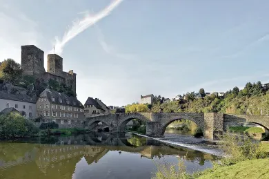 Die Burg Runkel liegt etwa 40 Meter oberhalb der Lahn bei der Stadt Runkel.