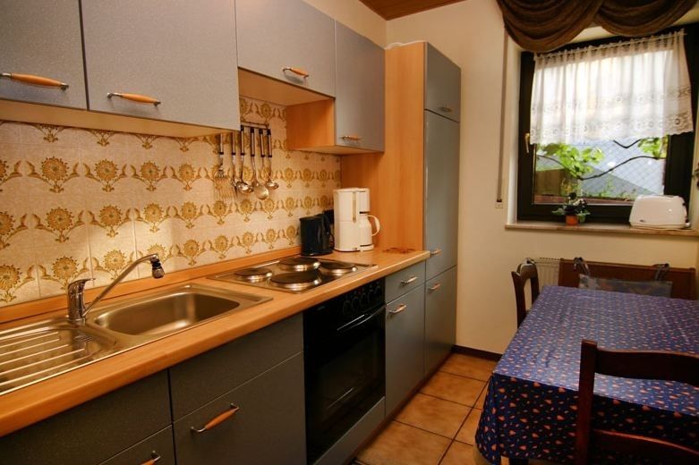 liegt im Erdgeschoss mit sep. Eingang. Die 60 qm sind wie folgt aufgeteilt: Wohnzimmer, kompl. eingerichtete Küche, Doppelschlafzimmer, Du/WC, Waschmaschine, Abstellraum und Terrasse. Belegung: 2 - 4 Personen.