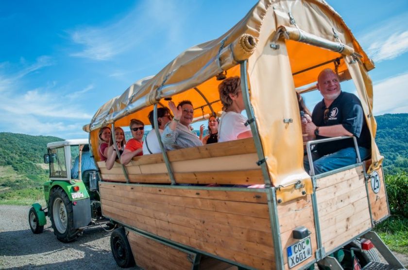 Eine Planwagenfahrt mit Weinverkostung ist wohl das lustigste Weinerlebnis! Bei einer geselligen Weinbergsrundfahrt können Sie Ihre Lieblingsweine finden und eine atemberaubende Mosellandschaft genießen. Zum Abschluss einer Fahrt beköstigen wir Sie mit einer deftigen Winzervesper.