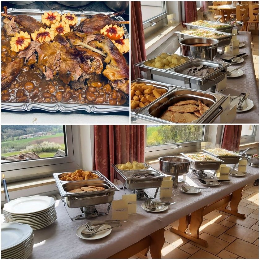 2022 haben wir den Regelbetrieb unseres Restaurants „Zur schönen Aussicht“ leider einstellen müssen. Gerne dürfen Sie uns aber ansprechen, wenn Sie eine besondere Location für Ihre Veranstaltung ab 20 Personen suchen. Das Lokal bietet Platz für 100 Gäste ebenfalls mit einzigartigem Talblick! Aber nicht nur die Aussicht ist besonders schön – auch die Qualität unserer Speisen ist sehr gut! Hier kocht der Chef für Sie frisch und lecker.