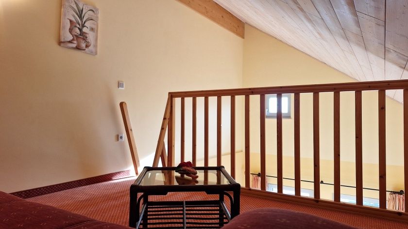 Zwei unserer Zimmer bieten diesen wundervollen Talblick! Direkt vom Bett aus können Sie durch bodentiefe Fenster über das Tal schauen. Diese Zimmer besitzen auch jeweils eine Galerie mit Ausziehcouch für weitere 2 Personen, die über eine Leiter erreichbar ist.