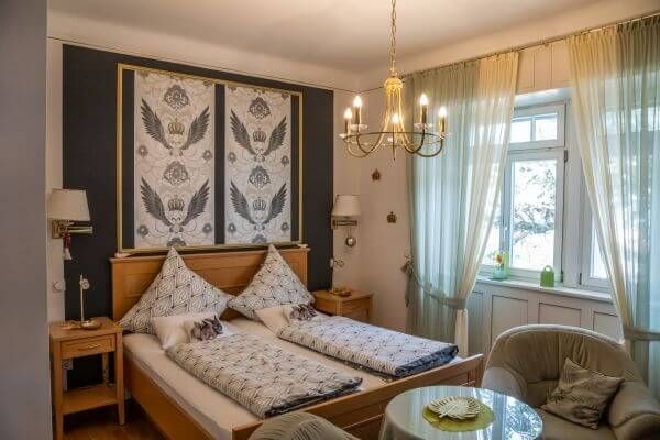 Fühlen Sie sich wohl in unseren Doppelzimmern, die alle im zauberhaften Jugendstil sehr gemütlich eingerichtet sind. Alle Zimmer sind mit Dusche, WC, TV und Telefon ausgestattet.