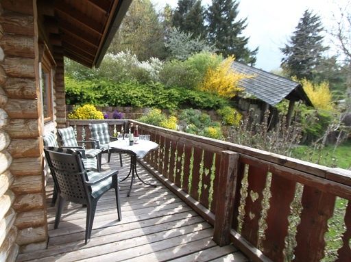 bis 5 Personen, 65 qm, großer Wohn-/Essraum mit Küchenzeile, 2 Schlafzimmer, DU/WC, Kinderbett und Hochstuhl, Erdgeschoss, Eingang 1 Stufe, großer Balkon mit Sitzgruppe und Liegestühlen, Fernsicht in Richtung SüdWest