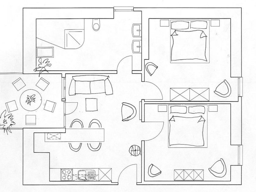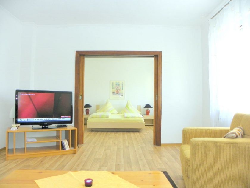 - 2 - 4 Personen, 60 qm, Wohn-/Schlafzimmer, Schlafzimmer, Dusche/WC, SAT-TV, Safe, Teppichboden, separate Komplettküche mit Essecke.