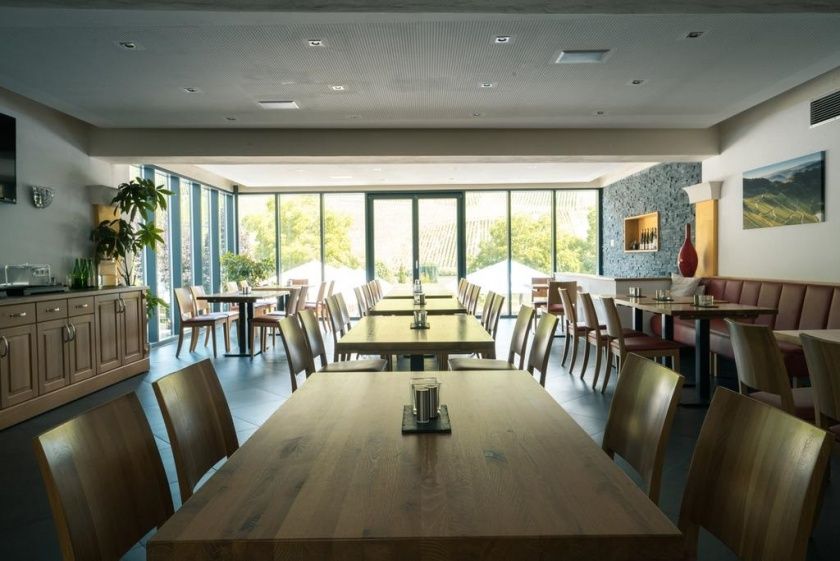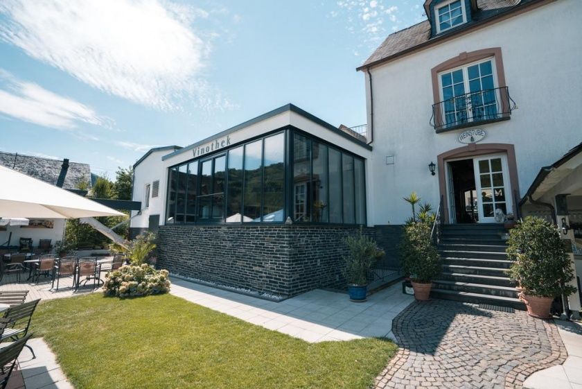 - Unsere neue Vinothek bietet Platz für kulinarische Weinproben mit herrlichem Blick auf die Mosel und unserem mediterranen Garten.