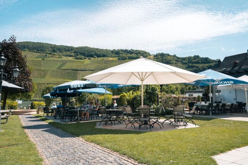Unsere Straußwirtschaft Moselgarten ist von Mai bis Oktober geöffnet und bietet viele Spezialitäten rund um den Wein. Hier sitzt man in der ersten Reihe, direkt am Ufer und kann die Winzer beim Arbeiten beobachten. Man blickt auf Mosel und Weinberge, ein Bühnenbild der Sonderklasse. Hier können die Radler auftanken, die Wanderer verschnaufen und die Weinromantiker genießen.