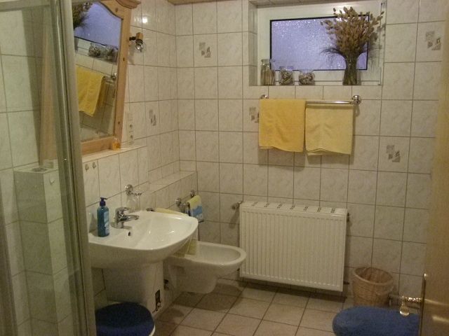 Im modernen komfortablen Bad befinden sich Dusche, Waschbecken, Toilette und Bidet. Bettwäsche, Handtücher und Geschirrtücher werden gestellt.