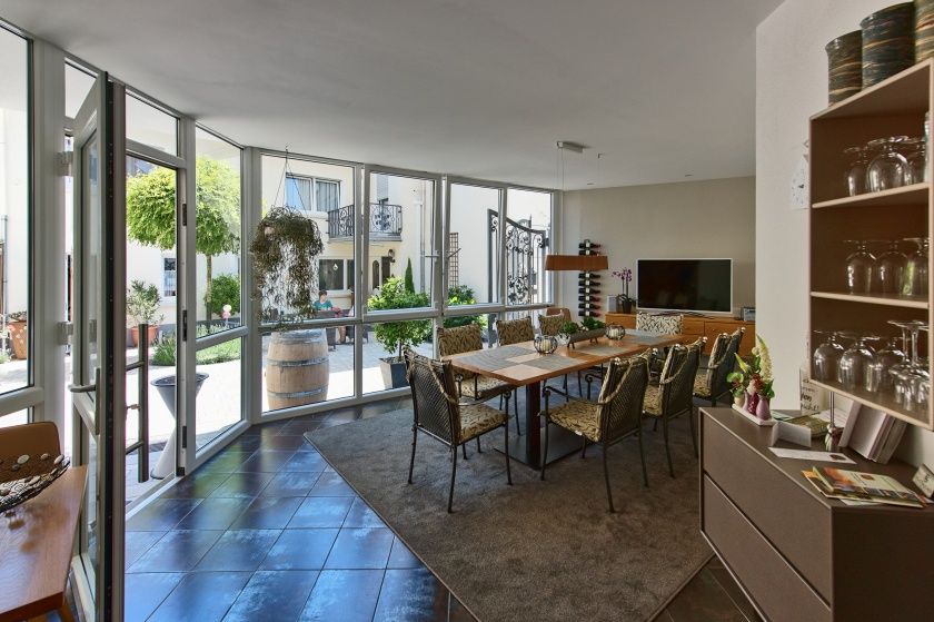 • Unser mediterraner Innenhof oder bei schlechtem Wetter unser Wintergarten lädt Sie ein, bei einem guten Glas Wein ihre Freizeit zu genießen.