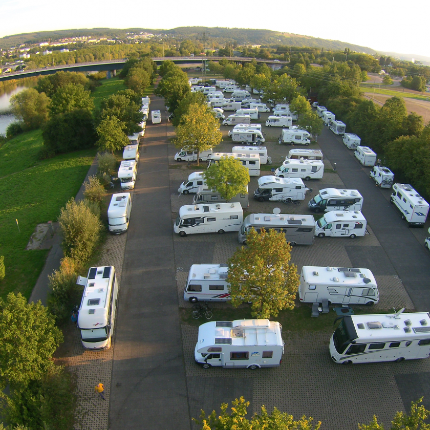 Auf unserem separaten Reisemobilstellplatz finden ca. 110 Reisemobile Platz. Der gesamte Platz hat einen ebenen Untergrund und ist befestigt mit Pflaster- und Rasengittersteinen. Mit dem Camp-Card-System können unsere Gäste rund um die Uhr An- und Abreisen. Sie erhalten bei der Einfahrt eine Karte auf die man am Bezahlautomat Geld aufladen kann. Mit der Karte kann man alles bequem erledigen. Strom nehmen wenn man braucht. Es gibt ein „kleines Sanitärhaus“ das man mit der Karte steuern kann, es wird nur der Verbrauch abgerechnet. Direkt auf dem Platz gibt es eine „Ver- und Entsorgung“ wobei das entsorgen für unsere Gäste frei ist und Versorgen ist ab 10 Liter = 0,10 € möglich (geringere Mengen zum Kaffeekochen sind auch kein Problem). Bei der Abreise bezahlt man am Automat die Übernachtung und vorhandenes Restguthaben wird ausgezahlt. Morgens und abends ist das Häuschen auf dem Stellplatz besetzt wo man sich Infos über Trier holen kann und einen Brötchenservice gibt es auch. Die Umstellung auf das Camp-Card-System bietet unseren Gästen die Möglichkeit weiterhin günstig zu Übernachten und dennoch, wenn er möchte und braucht ein erweitertes Angebot in Anspruch zu nehmen, wie z. B. Strom, Sanitärhaus, Ver- und Entsorgung. Wobei alles nur auf Verbrauch abgerechnet wird.