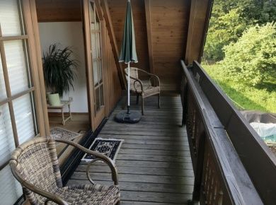 • Wohnzimmer: In unserer gemütlich eingerichteten Dachgeschosswohnung lässt es sich hervorragend ausspannen. Am Abend bei einem schönen Gläschen Pfälzer Wein einfach mal die Seele baumeln lassen. Das Wohnzimmer hat ein Schlafsofa, einen Flachbild TV und ein Radio. Vom Wohnzimmer aus hat man Zugang zum Balkon mit unverbaubarem Blick.