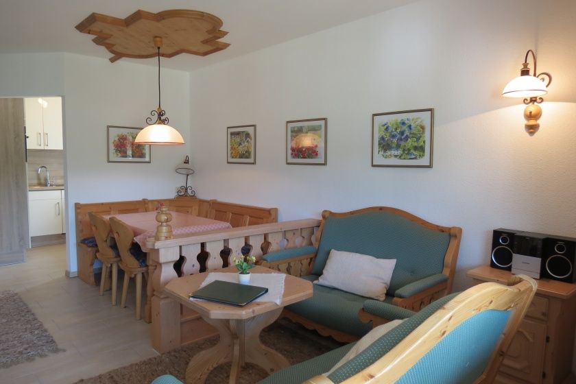 Liebevoll und zweckmäßig - auch für die ältere Generation - eingerichtet. Zwei Doppelbett Zimmer - jedes mit eigener Du/WC, Fön, kleine Diele, gemütliches Wohnzimmer im Landhausstil eingerichtet mit Essecke, Sitzgruppe, Sat-TV (Flachbild), hochwertig ausgestattete Küche mit hochgebautem Backofen, 4 Platten Ceran-Kochfeld, großer Kühlschrank mit Gefrierfach, Spülmaschine, Mikrowelle, Toaster, Kaffeemaschine, Eierkocher, Handrührgerät, Wasserkocher usw.