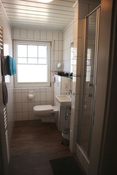 - Badezimmer mit Dusche und WC, Bademäntel auf Wunsch