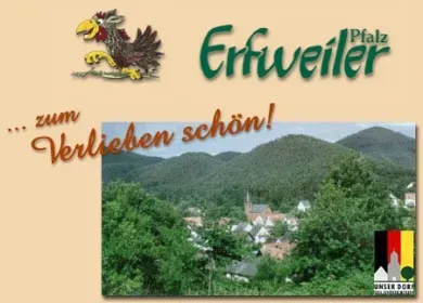 Erfweiler, ausgezeichnet mit der Goldmedaille im Wettbewerb „Unser Dorf soll schöner werden" ist eines der schönsten Dörfer Deutschlands. Eingebettet in eine idyllische Talsenke, liegt „die Perle“ des Dahner Felsenlandes, umgeben von Burgen, Felsen und Wäldern.