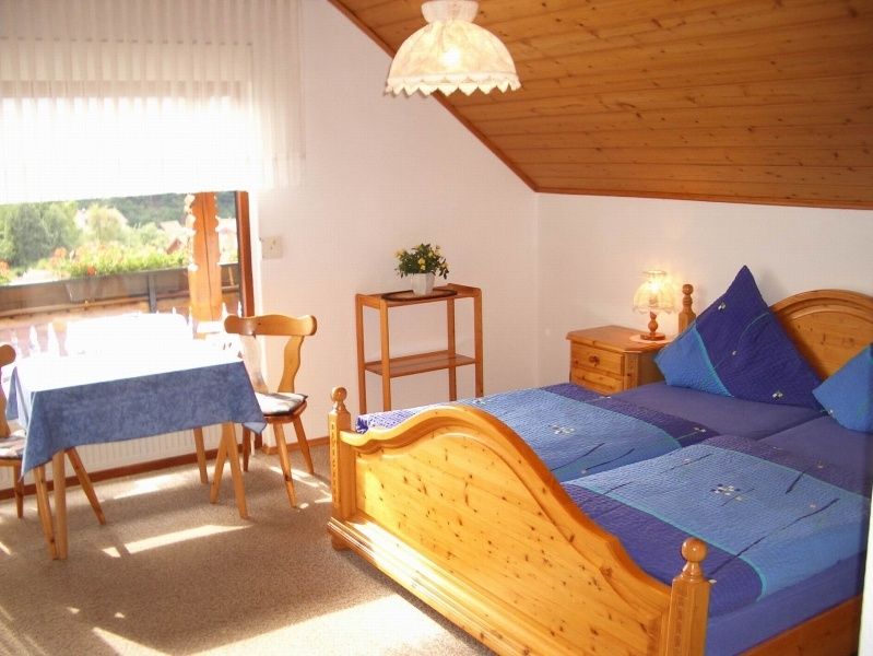 Die gemütlich und komfortabel eingerichteten Zimmer haben alle DU/WC, WLAN-Zugang, Sat-TV und teilweise Balkon mit herrlichem Blick auf ein Panorama von Wäldern und Felsen.