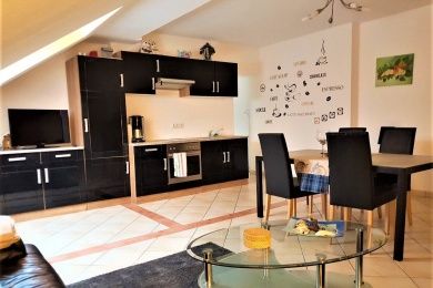 Wir bieten eine Nichtraucher-Ferienwohnung von 65 qm, mit Wohnküche, 2 Schlafzimmern für max. 5 Personen und modernem Bad.