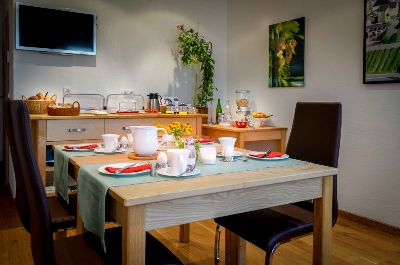 Nach einem lustigen und unterhaltsamen Grillabend mit anschließender Weinprobe in unserem Gewölbekeller und der Übernachtung in einem unserer 4 modernen behaglichen Gästezimmer steht am Morgen ein reichhaltiges Frühstück für Sie bereit.