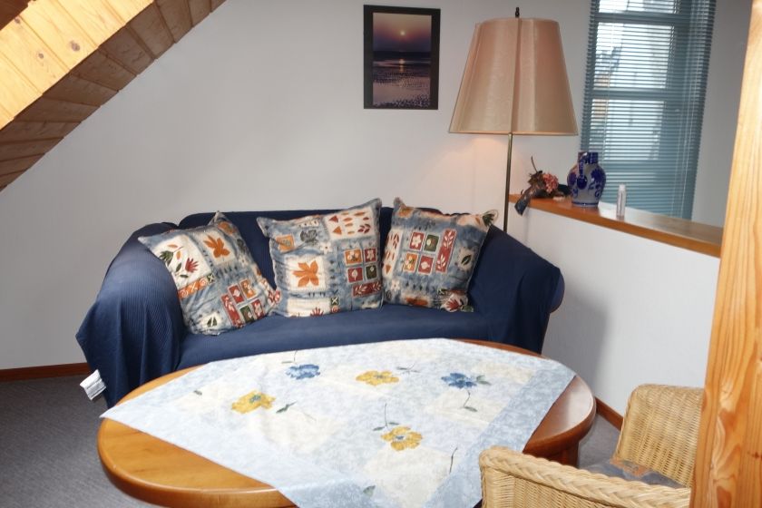 Der Balkon liegt zur Südwestseite, so dass Sie die Mittags- und Abendsonne genießen können. In der zweiten Etage befindet sich ein 30 qm großes Studio mit eingerichtetem Schlafzimmer, einer Sitzecke und einer weiteren Toilette.