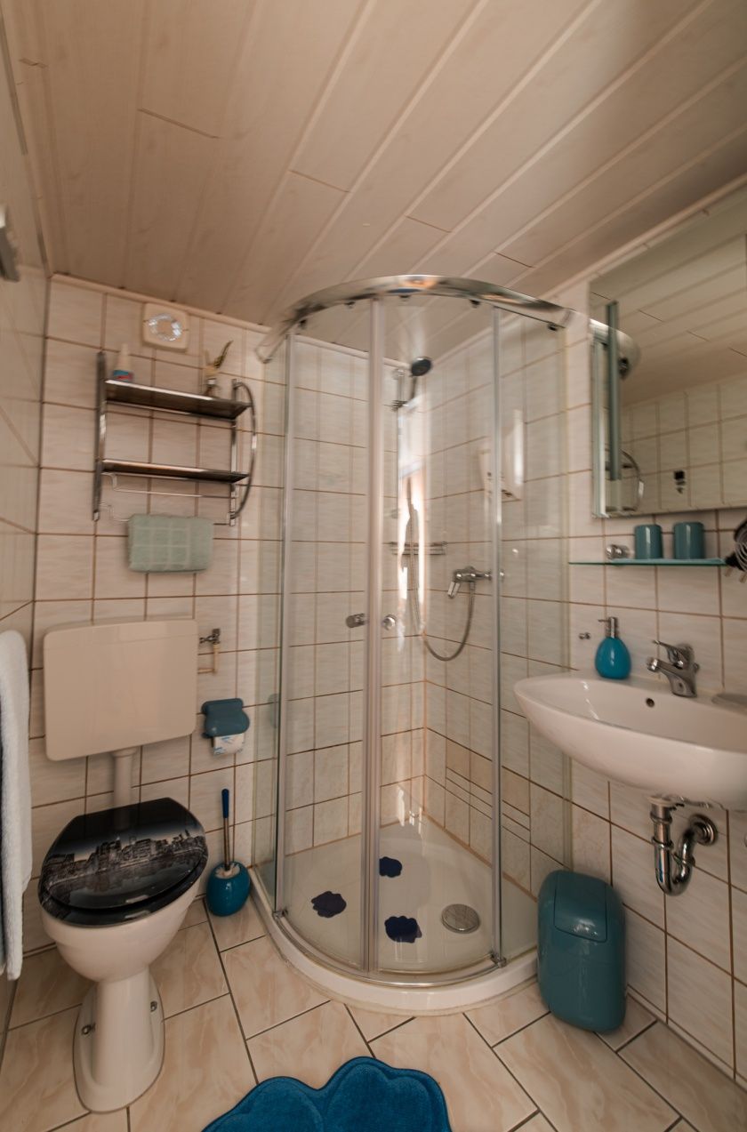 Unsere beiden Gästezimmer befinden sich im 1 Obergeschoss und jedes verfügt über einen schönen Balkon mit Blick auf den Rhein. Beide sind gegliedert in Wohn- und Schlafbereich und haben eine eigene Toilette und Duschkabine. Weiterhin gehören ein Kühlschrank, Kaffeemaschiene mit dazugehörigem Porzellan und natürlich ein Satelliten-Flachbild-TV zur Einrichtung.