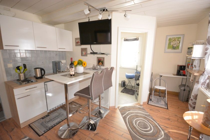 - Wasserkocher, Kühlschrank, Senseo, Kaffeemaschine, Kleine Küche mit Küchenbar