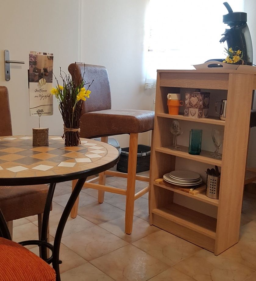 - Küchenbartisch mit kleiner Auswahl an Geschirr