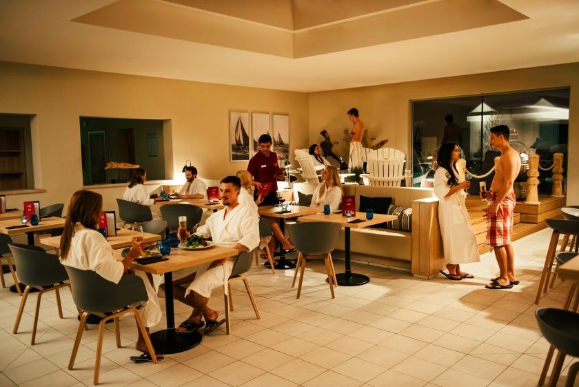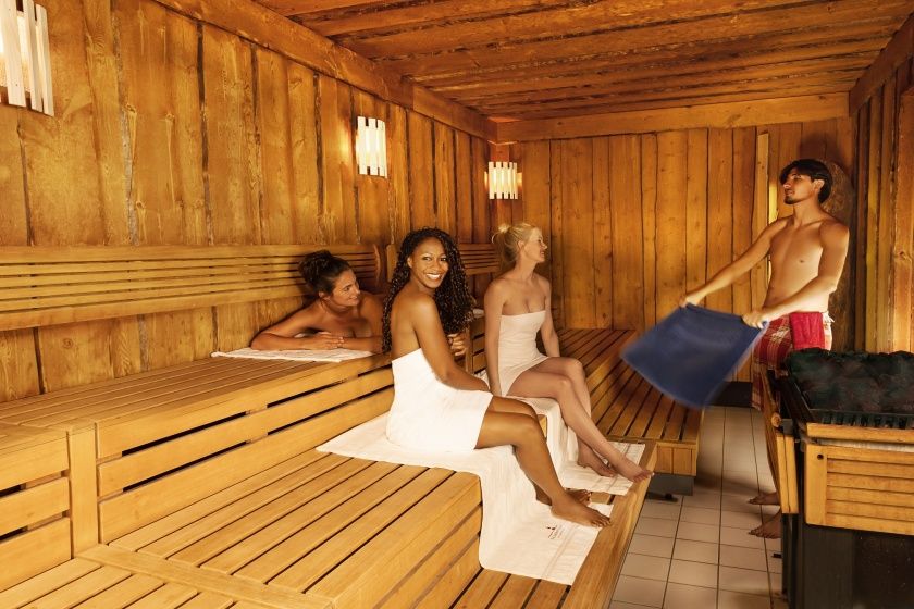 Herzstück ist der große Saunabereich mit Innen- und Außenbereich sowie wechselnden Aufgüssen. In den Saunen kann es richtig heiß werden mit Temperaturen bis zu 90 °C. Für Saunaneulinge gibt es aber auch eine Niedrigtemperatursauna, ideal zum Eingewöhnen.