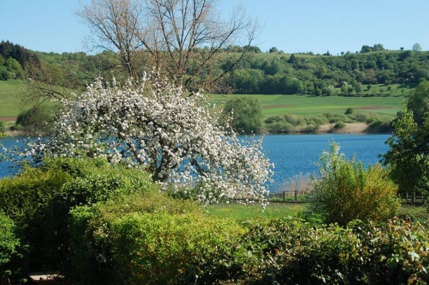 Unsere Ferienwohnungen haben alle einen Panoramablick auf das Schalkenmehrener Maar und die einzigartige, es umgebende Natur. Genießen Sie von Ihrem Balkon aus die frische Luft der Vulkaneifel.