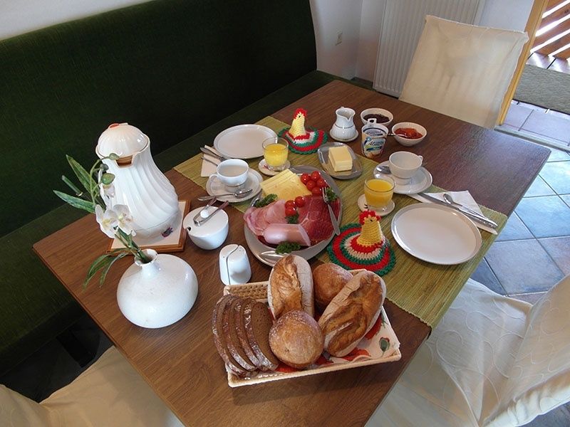 - Am nächsten Morgen erwartet Sie auf Wunsch ein reichhaltiges Frühstück u.a. mit selbstgemachter Marmelade. Alternativ können Sie in unserer modernen Küche mit Herd, Backofen, Wasserkocher, Spülmaschine, etc. Ihr Frühstück selbst zubereiten.