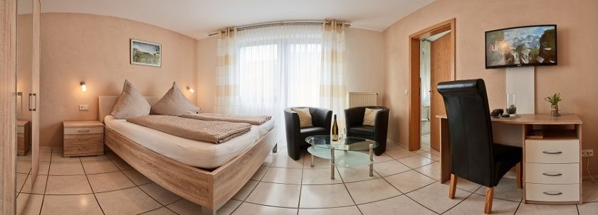 • Haarfön, Kosmetikspiegel, Satelliten-TV, Radiowecker, Zimmer-Safe, eine Flasche Wein bei Ankunft