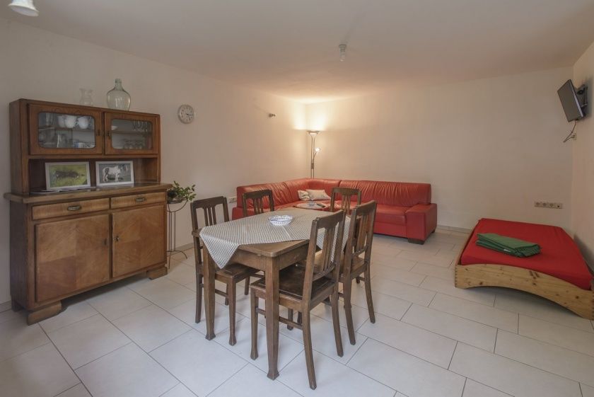 - Gänseblümchen, bis zu 7 Personen, kombiniertes Wohn- und Esszimmer mit gemütlicher Couch und Fernseher, Bad mit Dusche/WC, separate Badewanne, 2 Schlafzimmer und Innenhof mit Grillmöglichkeit. Separater abschließbarer Raum für Fahrräder oder Kinderwagen. Extras: Stellplatz vor der Tür, sehr ruhig.