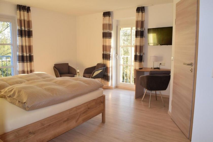 Unsere ruhig gelegenen Doppelzimmer sind modern und stilvoll eingerichtet. Alle Zimmer sind ausgestattet mit: Dusche, WC, Fön, SAT-TV-Anschluss, Telefon- und Modemanschluss.