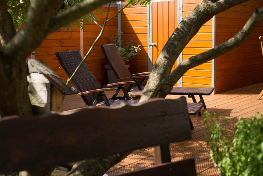 Entspannen Sie auf den 2 Liegen und der Sitzecke auf der Holzterrasse in unserem Garten. Es ist auch möglich, dort nach Lust und Laune zu essen und den Gasgrill zu nutzen.