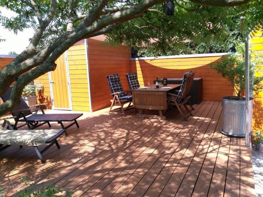 • So wurde 2015 die neue große Holzterrasse im Garten eingeweiht und 2017 entstand der Fahrradunterstellplatz.