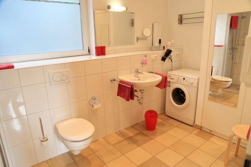 • Im Bad mit Dusche finden Sie Fön und Waschmaschine.