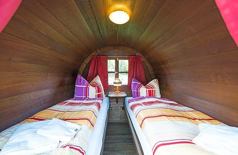 - Seit 2021 haben wir ein Familienfass mit 2 Doppelbetten übereinander für 4 Personen.