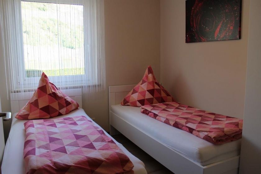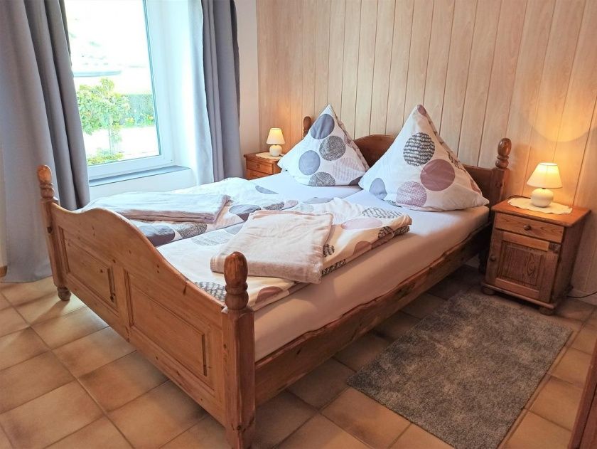 Ca. 50 m², im Erdgeschoss liegend, 2 separate Schlafräume (1 Schlafzimmer mit 1 Doppelbett und 1 Einzelbett, 1 Schlafzimmer mit 2 Einzelbetten) Wohnraum mit Kochnische, Bad mit Dusche.