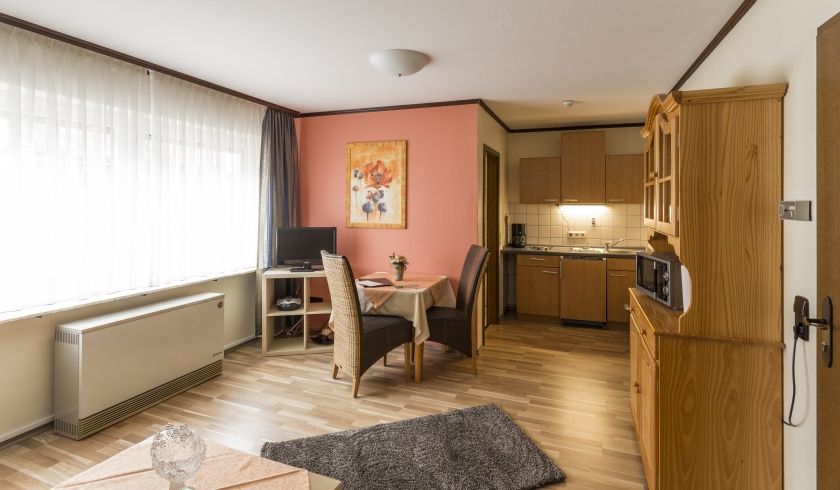 - kombiniertes Wohn-/Schlafzimmer mit LCD-Sat-TV, Radio mit CD