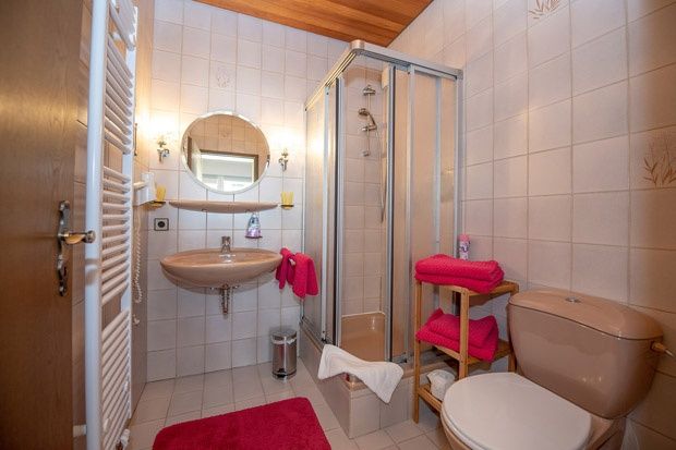 - Bad mit Dusche, WC und Föhn und Vergrößerungsspiegel