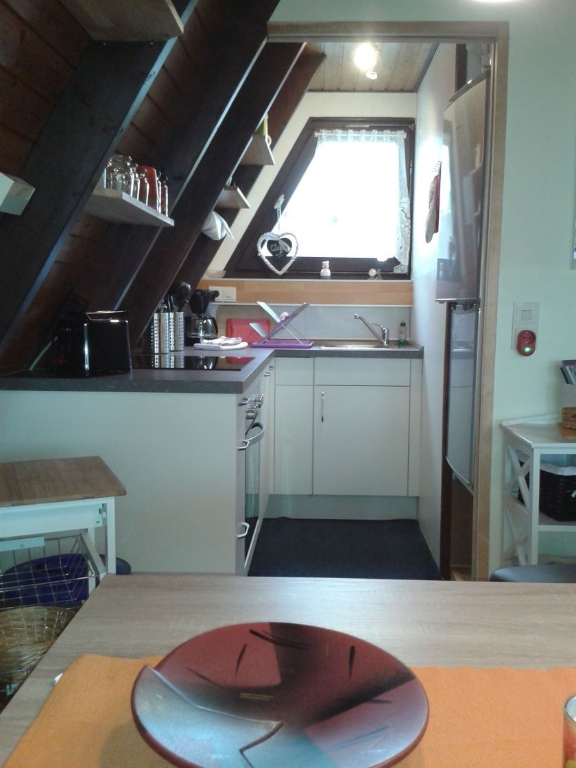 Der Wohnbereich im Erdgeschoss ist sehr offen und geräumig gestaltet. Genießen Sie von hier den tollen Blick in die Natur. Die offene, komplett ausgestattete neue Einbauküche mit Backofen, Spülmaschine, Kühl- u. Gefrierkombination, bietet sich zum gemeinsamen Kochen und Brutzeln, an. Auf der Terrasse, vor dem Wohnzimmer mit toller Aussicht, sitzen Sie selbst bei einem warmen Sommerregen trocken und gemütlich.