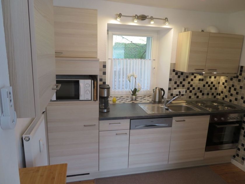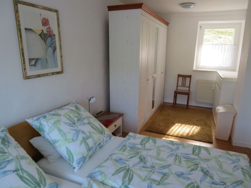 Die 52 qm große, neu eingerichtete FeWo gliedert sich in ein Doppelschlafzimmer mit geräumigem Schrank und einer Kommode; ein Wohnzimmer mit SAT-TV und Esstisch; eine neue Küchenzeile mit Spülmaschine. Ferner verfügt die Ferienwohnung über eine geräumige Dusche und WC mit Waschbecken. Eine neue Waschmaschine und ein Ablufttrockner befinden sich ebenfalls in der Ferienwohnung. Wenn Sie „home cooking“ bevorzugen, steht Ihnen eine komfortable Küche mit allem Nötigen zur Verfügung.