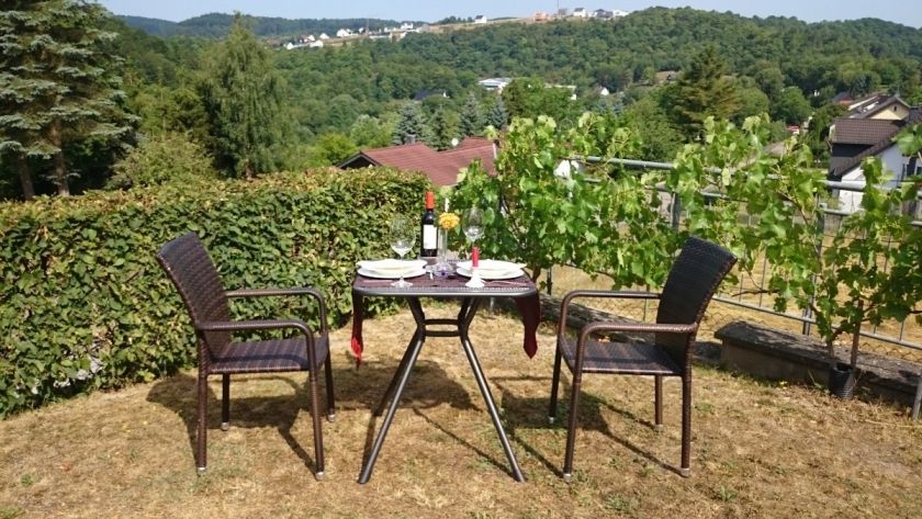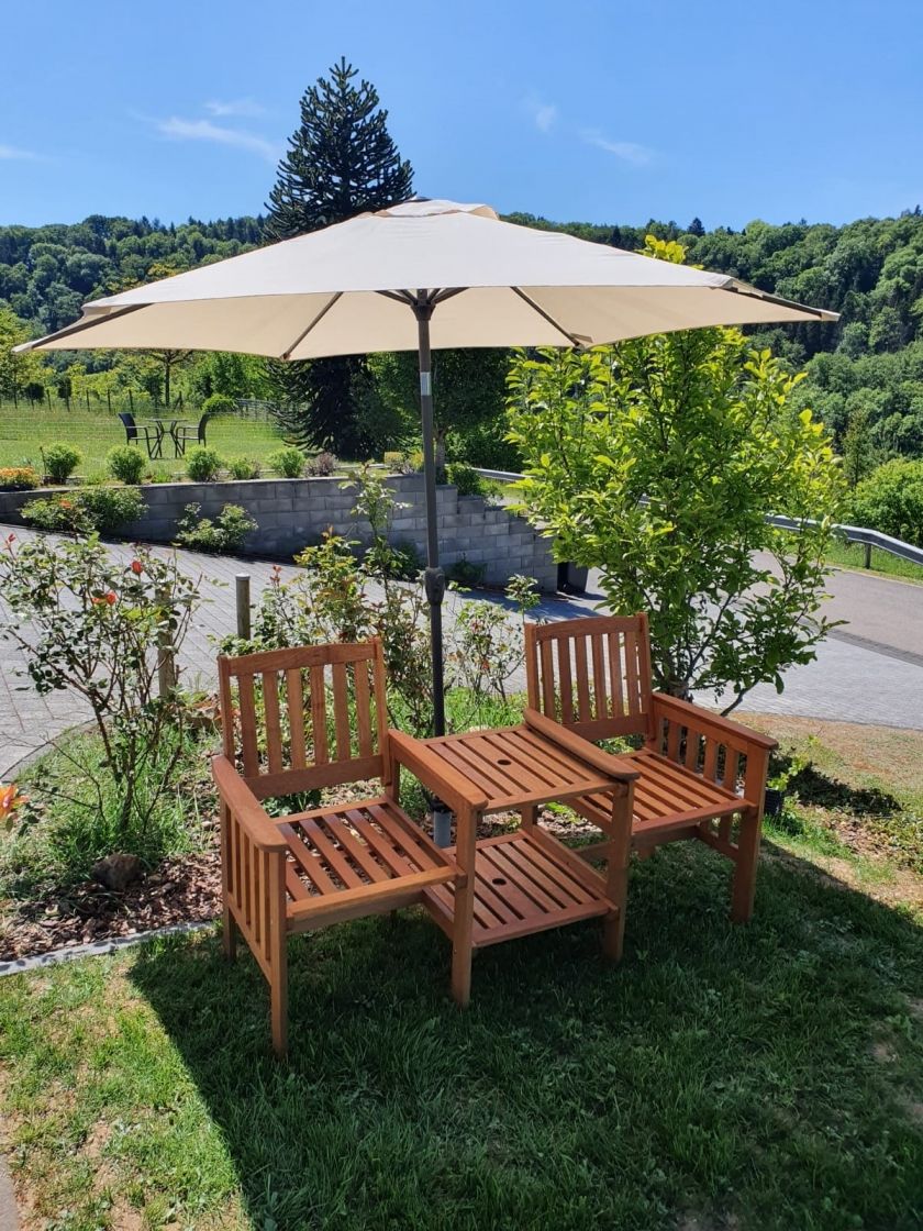 - Ein gemütlicher Sitzplatz ist unweit des Eingangs vorhanden.