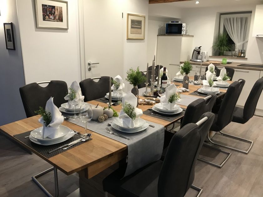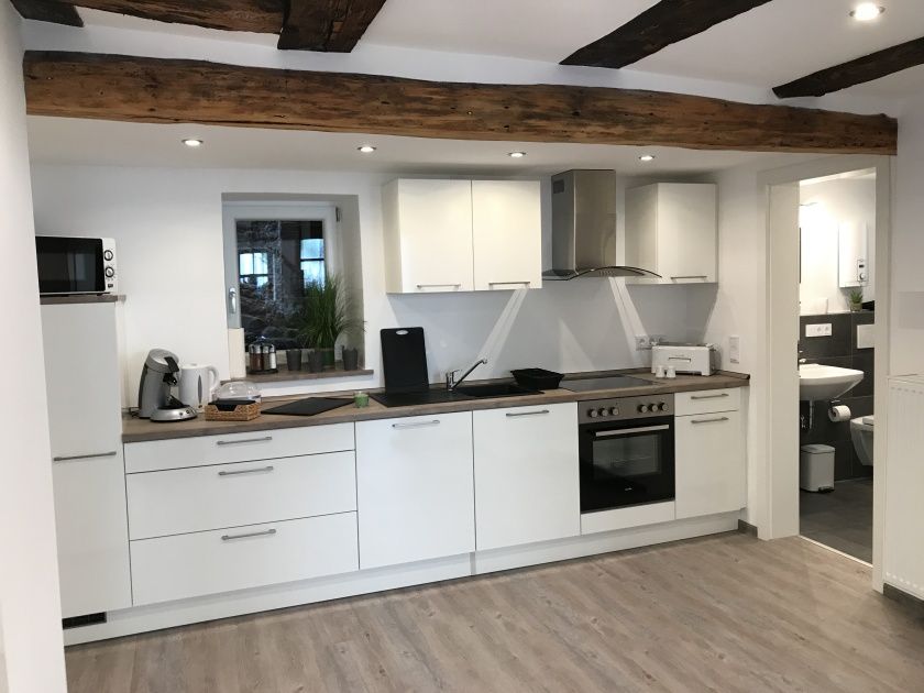 - Die Küche lässt keine Wünsche offen, vom Geschirrspüler, 4er Cererankochfeld, Backofen, Wasserkocher, Melitta Kaffeevollautomat ,Mikrowelle, Kühlschrank mit Eisfach, Toaster, Eierkocher, Küchenwaage, Handrührgerät bis hin zum Ess-und Kochgeschirr ist alles vorhanden.
